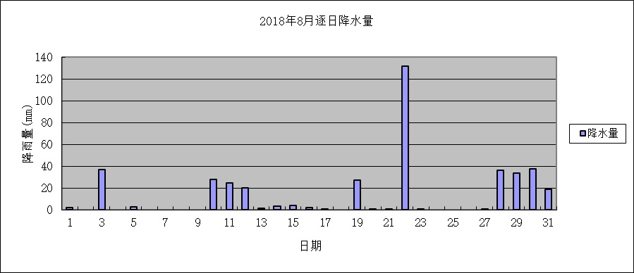 月总降雨量415.9毫米,与累年值比偏多9成。其中,上旬、中旬雨量与累年值比分别偏多1成、近1成,下旬雨量是累年值的3.4倍。日最大降雨量131.7毫米,出现在22日。